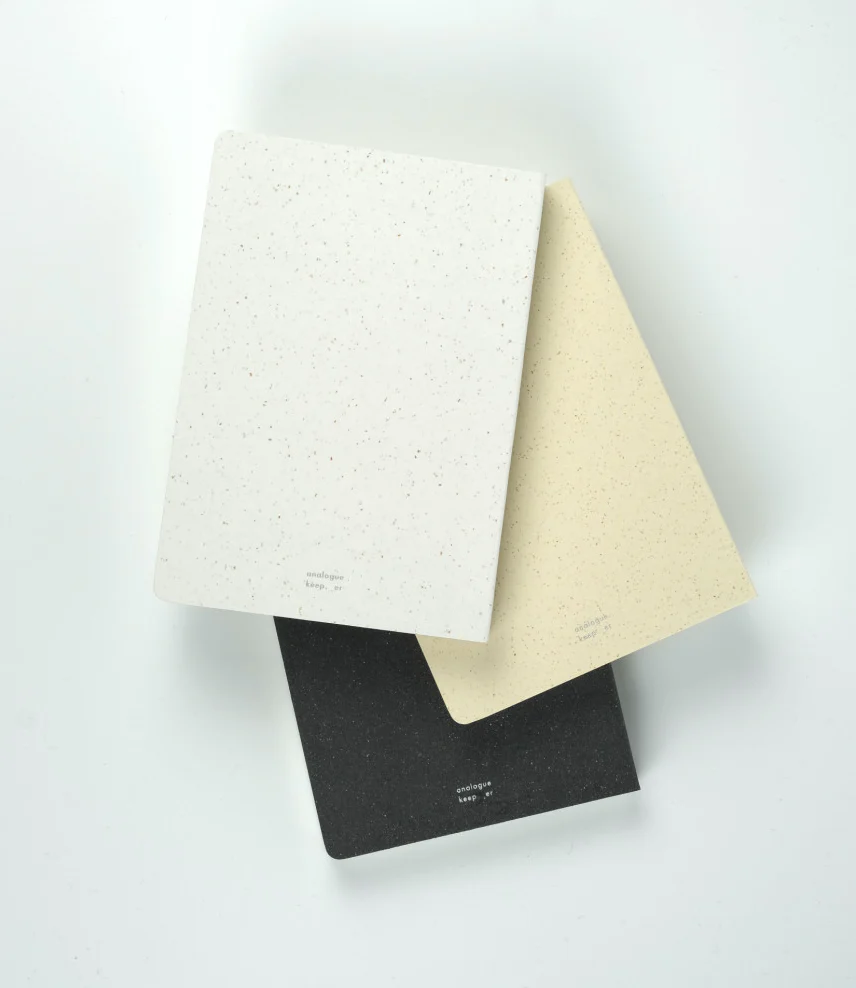 The third of Analogue Keeper’s three cult paper objects. As with their dated diaries, the AK Logue Book tends to sell out within a matter of months, typically unavailable to the general public for entire seasons at a time. Features a durable 215gsm cover in either galaxy (metallic black) or oat (speckled beige) and, on the inside, unobtrusively faint grids and a wrap-around margin that neatly frame first drafts, final thoughts and everything in between.