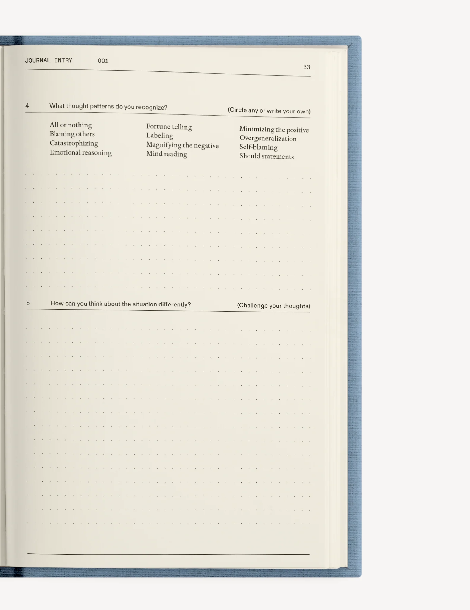 thought patterns with this easy-to-use, guided notebook. Utilizing Cognitive Behavioral Therapy, a rigorously-tested and widely-used treatment, you’ll develop the skills to identify, challenge, and change unhelpful thought patterns so you can feel better.