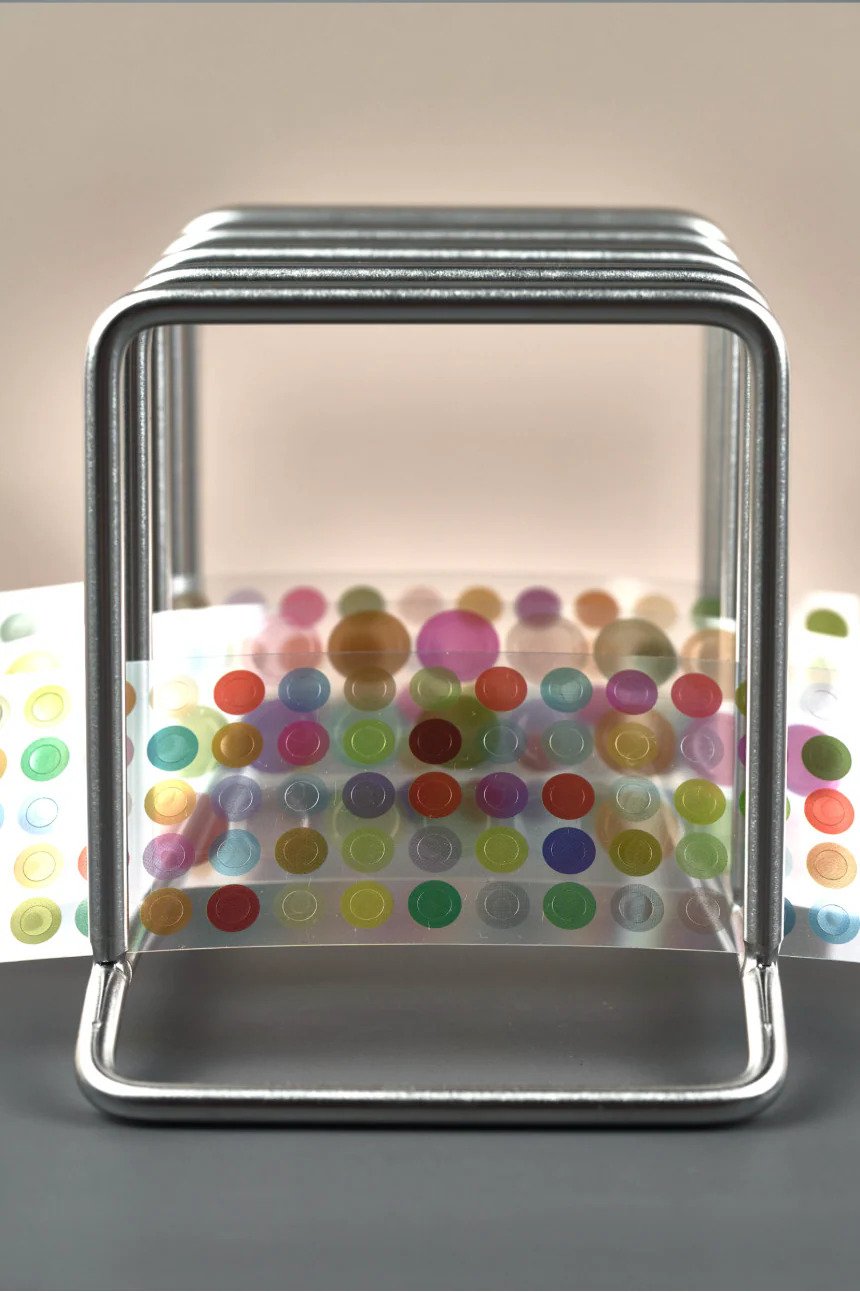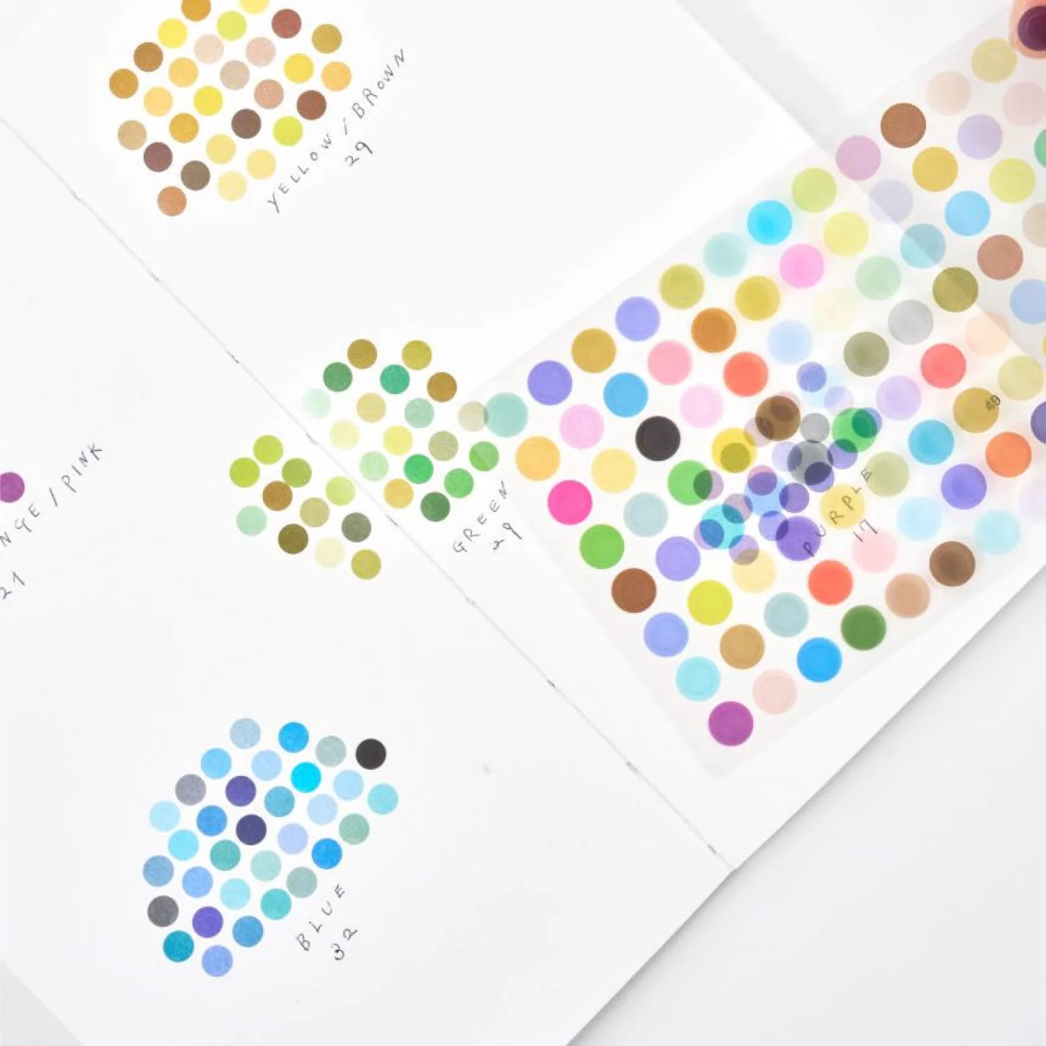 Translucent dot stickers—or beads, as their designer calls them (or marbles, as Rilke might have called them). Use these to label, categorise and mark. An organisational wonder in the right hands and an unrestrained riot of colour in more playful ones. Who’s to say what you can and can’t do with marble-dot-bead stickers.