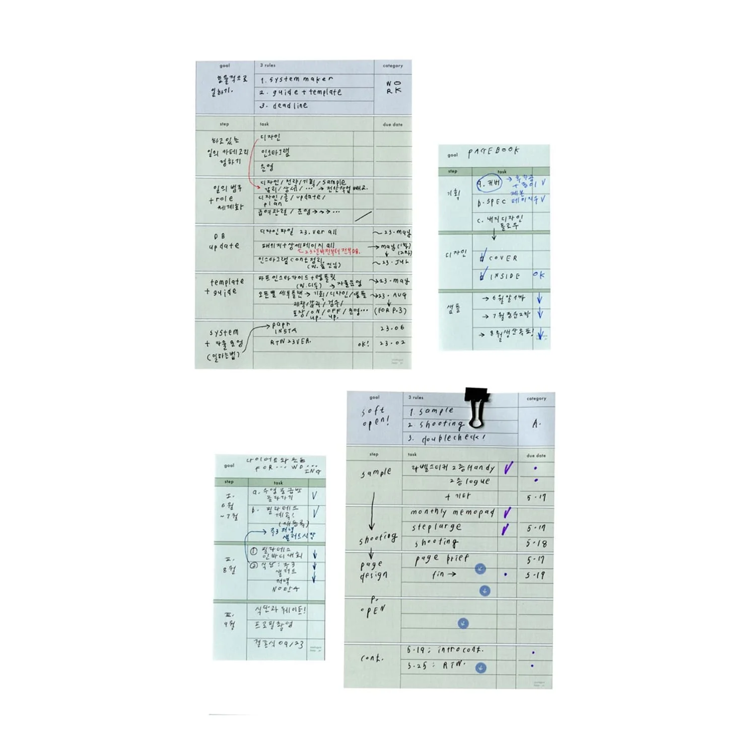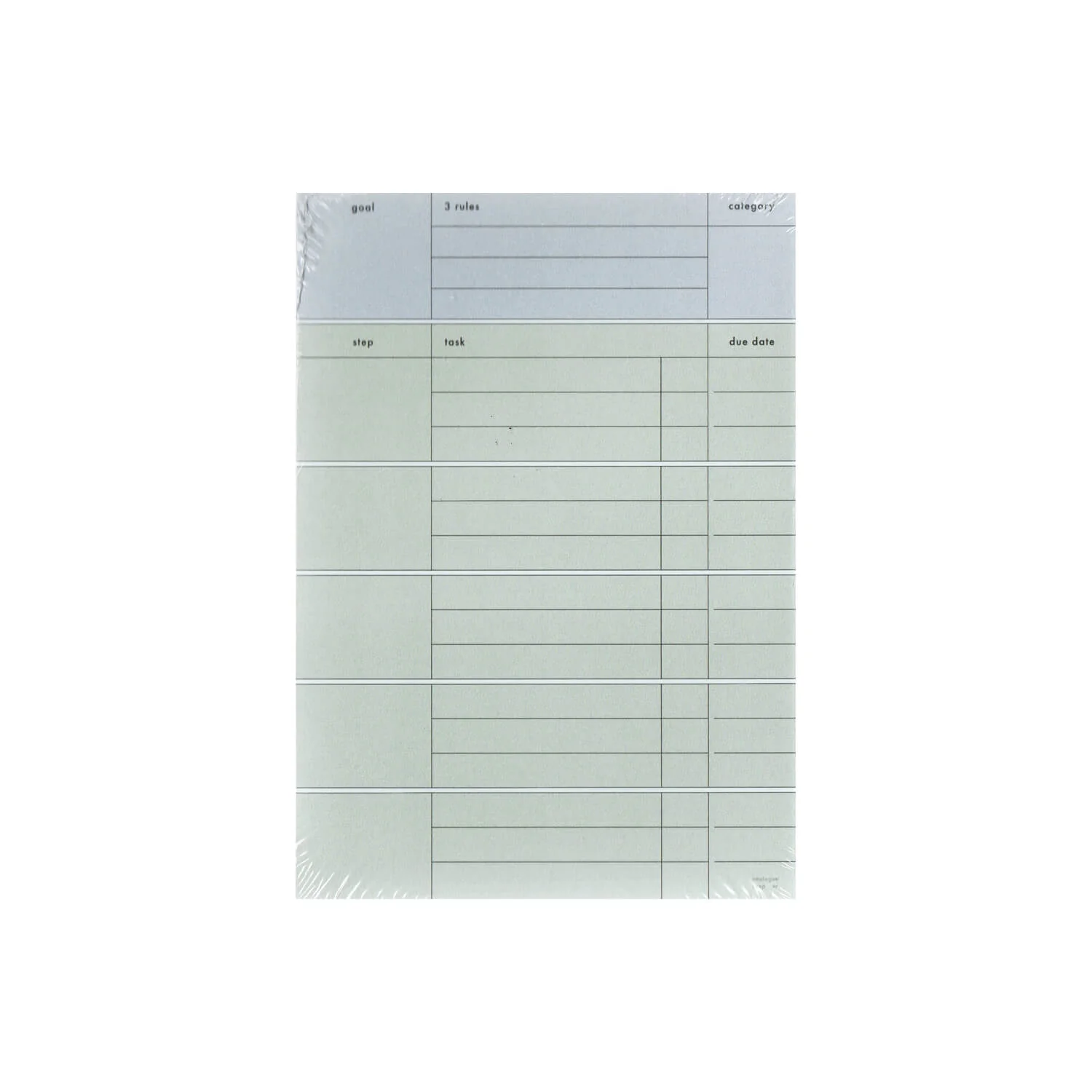 Goals, goals, elusive goals. Expert consensus reassures us that these can be achieved by splitting the big goal into a series of manageable mini-goals. To keep things as [opposite of intimidating] as possible, this notepad splits your goal into three major steps with three sub-tasks. To the right is a nifty column for you to tick off each task as, God willing, it is achieved.