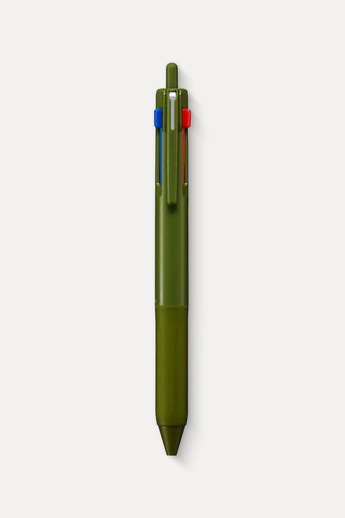 Materials: Recycled PC resin (barrel); rubber (grip); steel, plastic (clip); oil-based ink